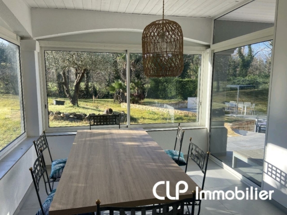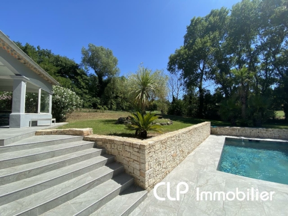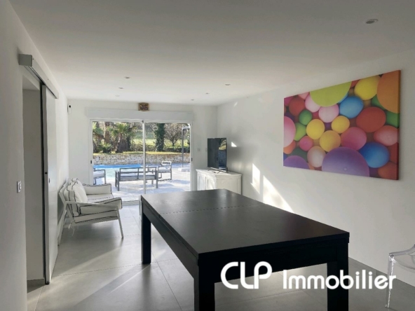 L’agence CLP immobilier, vous propose à la vente, cette villa de 2003 entièrement rénovée avec goût. Elle se compose d’une grande pièce de vie de 70 m² avec cuisine équipée prolongée par une terrasse couverte, un deuxième salon de 27 m², 4 chambres, 2 salles de bain, 2 wc. Beau terrain de 1200 m² entièrement clos et arboré avec piscine.