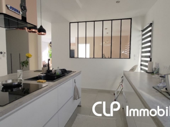 CLP Immobilier vous propose cette villa contemporaine type 6 comprenant un séjour lumineux avec grande cuisine familiale et salle à manger pour recevoir les invités. Une chambre de plain pied et 3 chambres dont une suite parentale à l’étage. Terrasse donnant sur un jardin clos avec piscine, garage ainsi quune chaufferie et une buanderie. Prestations modernes et confortables