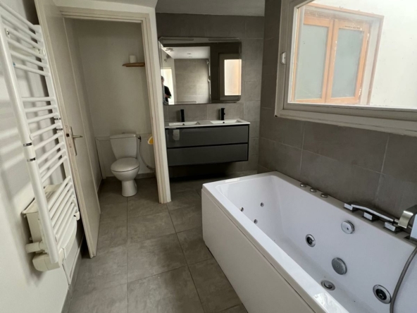 Elle se compose dun hall dentrée, dun séjour avec cuisine ouverte, de 4 chambres, dun bureau, de 2 salles de bains ainsi que dune mezzanine. Chauffage central au gaz de ville.
