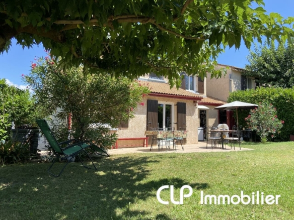Villa récente de 110 m² sur un terrain de 452 m² avec piscine comprenant au rez de chaussée un espace de vie de 49 m² avec cuisine aménagée et équipée, une salle d’eau et un garage de 25 m². A l’étage, vous disposerez de 3 chambres avec placards et d’ une sallle de bains. Climatisation réversible et poêle à bois. Idéale pour jeune couple avec enfants.